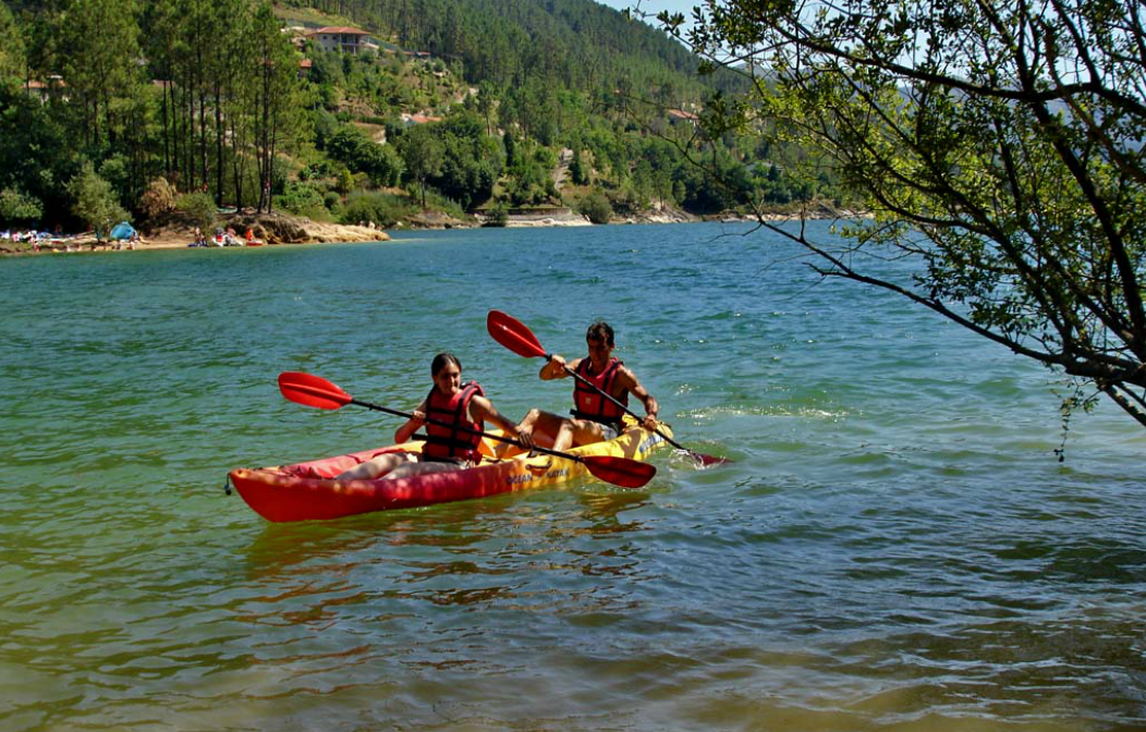 Atividade praticada na albufeira da caniçada com opção pelo simples aluguer da canoa e equipamento individual de segurança ou por passeios organizados com um monitor guia.