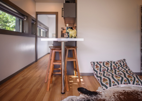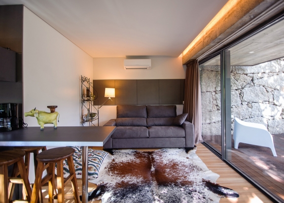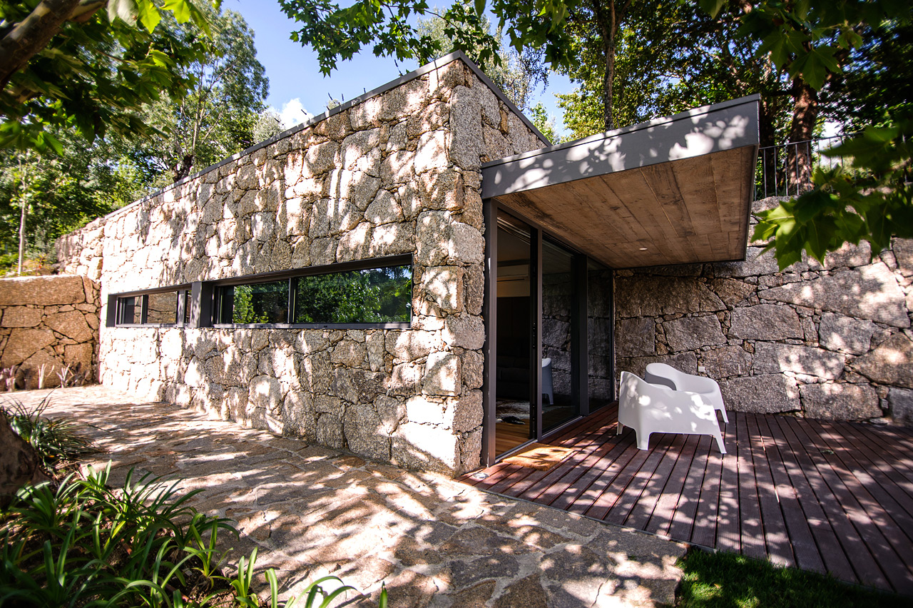 La estructura granítica y la ventana panorámica que cruza toda la casa confieren a esta vivienda una personalidad distinta, que le permite integrar totalmente la imagen arquitectónica de la región en el entorno autóctono. Tiene también un porche con dos sofás de exterior ideales para reposar en total sintonía con el medio ambiente.